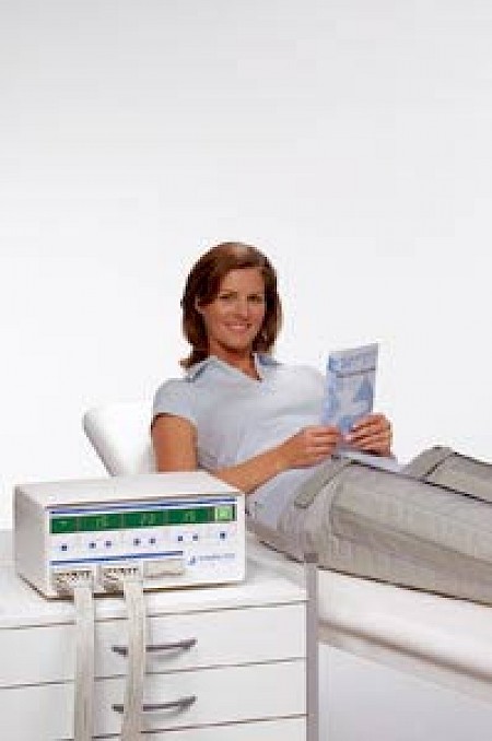 Bei diesem patentierten Therapiegerät („Made in Germany“) realisiert der gradiente Behandlungsdruck ein physiologisch effizientes Druckgefälle und somit eine sanfte und schonende Entstauung, die auf die einzelnen Gewebeschichten und Gefäße wirkt.